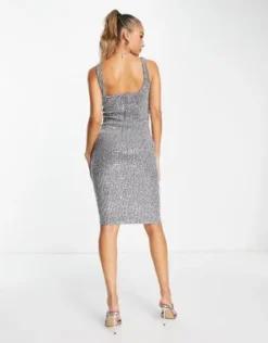 Vero Moda Petite – Vestito Midi A Tubino Con Glitter Argentato