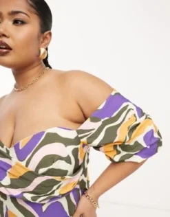 Esclusiva ASOS DESIGN Curve – Vestito Midi In Raso A Fiori Con Maniche Con Volant