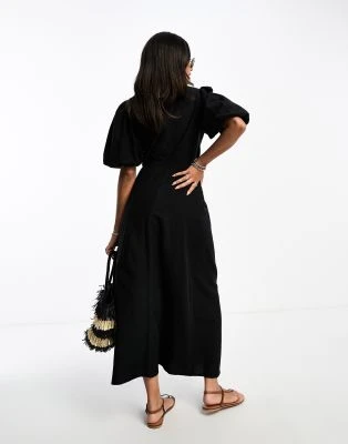 ASOS DESIGN – Vestito Milkmaid Midi Nero E Rosso A Fiori Con Dettagli Arricciati E Maniche Svasate