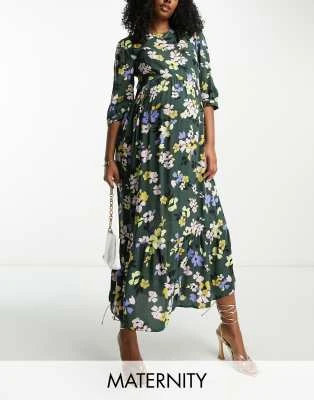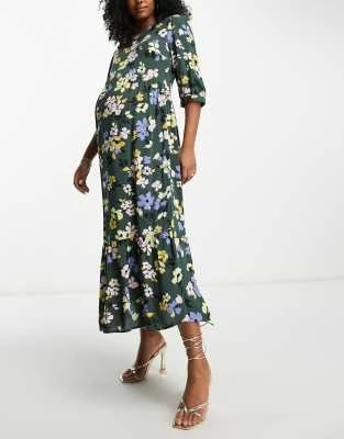 Hope & Ivy Maternity – Vestito Midi Verde Ricamato Con Scollo Profondo