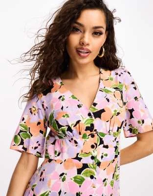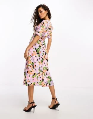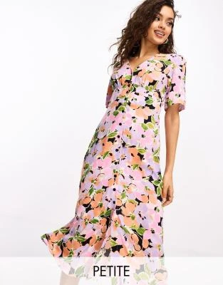 Nobody’s Child Petite – Esme – Vestito Midi Con Dettaglio Laccetti Sulle Maniche Verde A Fiorellini
