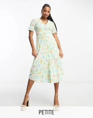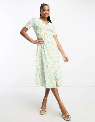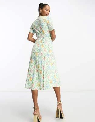 ASOS DESIGN – Vestito Da Giorno Midi Arricciato Con Maniche Ad Aletta Bianco Con Stampa Con Ciliegie
