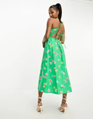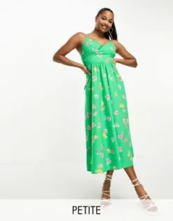 Forever New Petite – Vestito Corto Verde A Fiori Con Lacci Sulle Maniche