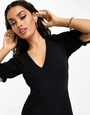 ASOS DESIGN – Vestito Da Giorno Midi Arricciato Con Maniche Ad Aletta Bianco Con Stampa Con Ciliegie