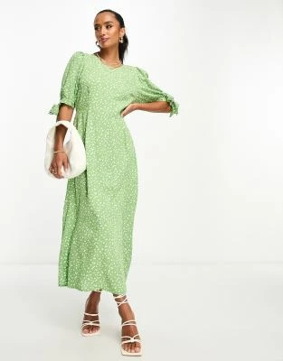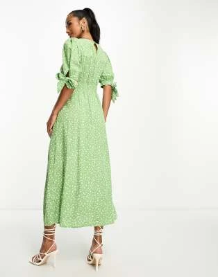 ASOS DESIGN Petite – Vestito Lungo A Pieghe E Balze Verde Salvia Con Scollo Profondo