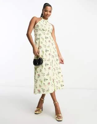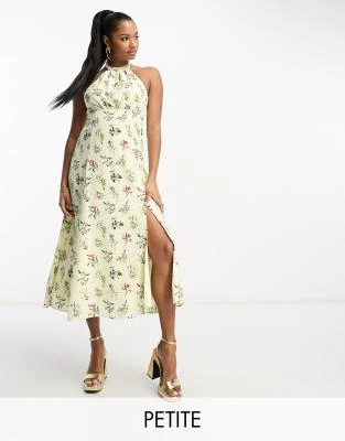 Nobody’s Child Petite – Esme – Vestito Midi Con Dettaglio Laccetti Sulle Maniche Verde A Fiorellini