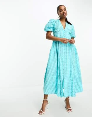 Nobody’s Child Petite – Esme – Vestito Midi Con Dettaglio Laccetti Sulle Maniche Verde A Fiorellini