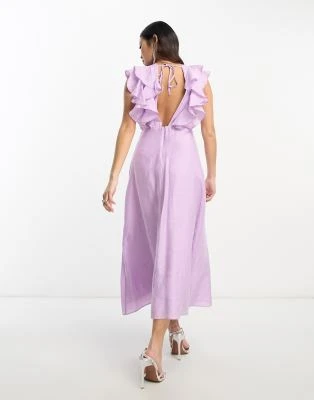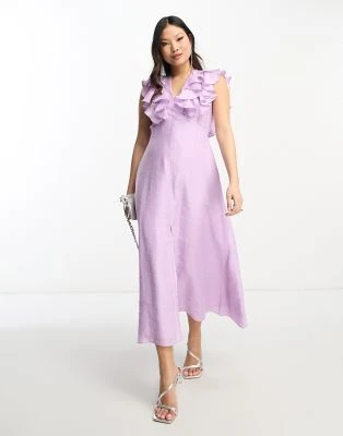 Never Fully Dressed Petite – Vestito Lungo Rosa Con Stampa “La Mer” E Maniche A Palloncino