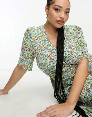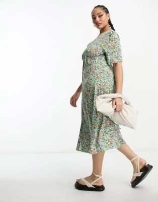 Hope & Ivy Plus – Vestito Midi Giallo E Verde A Fiori Con Laccio Avvolgente