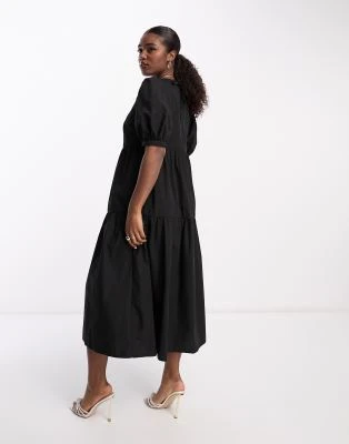 ASOS Maternity ASOS DESIGN Maternity – Vestito Midi Lilla Con Scollo Ad Anello E Maniche Con Volant