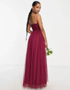 Anaya Petite – Vestito Lungo Da Damigella In Tulle Rosa Monospalla