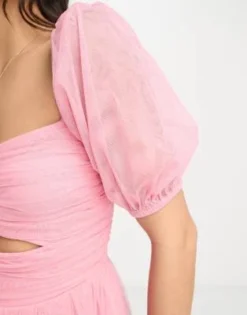 Anaya Petite – Vestito Midi Rosa Con Cut-out E Maniche A Sbuffo