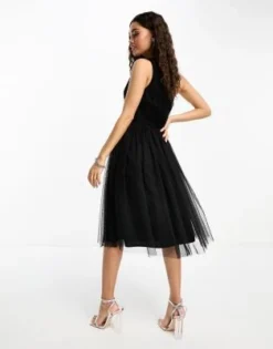 Anaya Petite – Vestito Lungo Per Damigella Monospalla In Tulle Nero