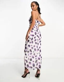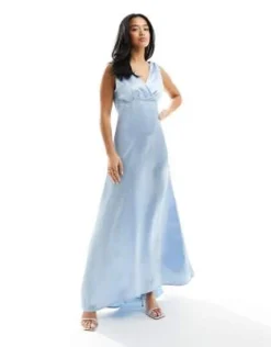 Vila Petite – Vestito Lungo In Raso Blu Navy Con Scollo Ad Anello