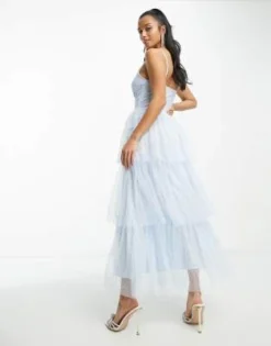 Vila Petite – Vestito Lungo Da Damigella In Tulle E Plumetis A Balze Blu