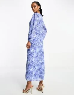 Vila Petite – Vestito Lungo Blu A Fiori Con Scollo A V E Bottoni