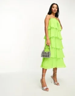 Y.A.S Petite – Vestito Midi Con Spalline Sottili A Balze Verde
