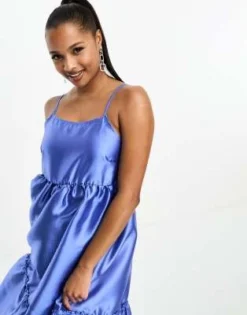 Vila Petite – Vestito Midi In Raso Rosa Polvere Con Spalline Sottili E Allacciatura Sul Retro