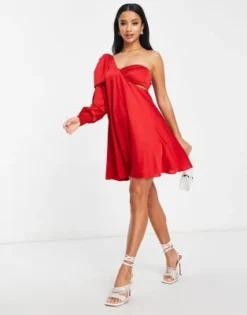 Forever New Petite – Vestito Corto Monospalla In Taffetà Bianco Neve