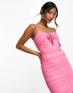 ASOS DESIGN Petite – Vestito Midi A Pieghe Con Spalline Sottili Arancione Con Volant