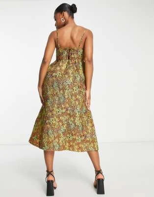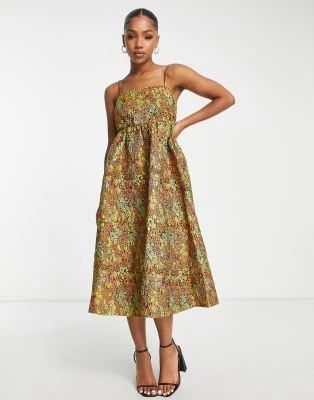 ASOS DESIGN – Vestito Da Giorno Midi Arricciato Con Maniche Ad Aletta Bianco Con Stampa Con Ciliegie
