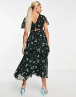 ASOS DESIGN Maternity – Vestito Da Giorno Midi A Balze A Fiorellini Misti Con Dettagli In Pizzo