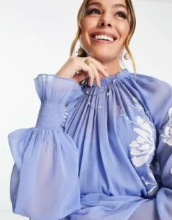 ASOS Maternity ASOS DESIGN Maternity – Vestito Lungo Accollato Blu Navy A Fiori Con Polsini Ampi