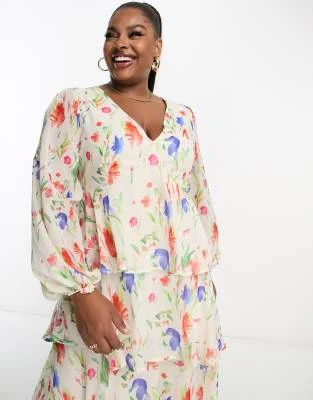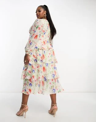 Topshop Curve – Vestito Da Cerimonia Midi In Raso A Fiori Blu