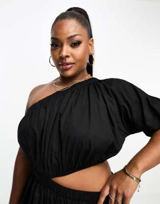 ASOS DESIGN Curve – Vestito Lungo Nero Con Taglio Sbieco E Maniche Ad Aletta