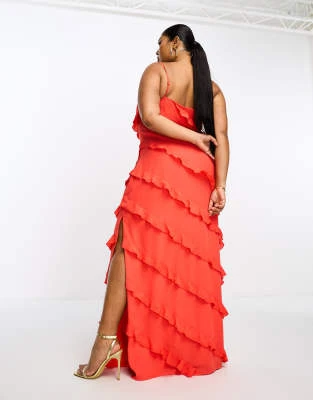 ASOS DESIGN Curve – Vestito Lungo Nero Con Taglio Sbieco E Maniche Ad Aletta