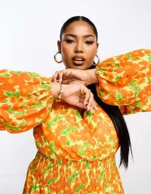 Topshop Curve – Vestito Da Cerimonia Midi In Raso A Fiori Blu