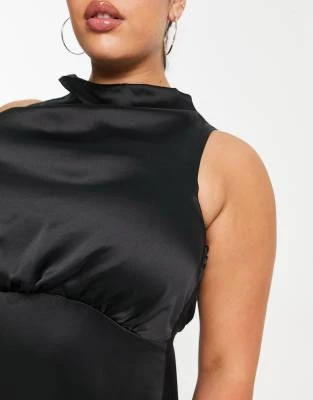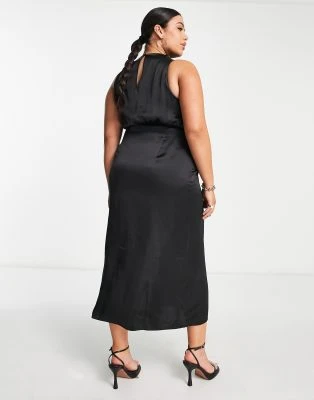 ASOS EDITION Curve – Vestito Lungo Allacciato Al Collo Con Arricciature In Raso Verde Salvia