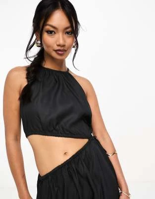 ASOS DESIGN – Vestito Milkmaid Midi Nero E Rosso A Fiori Con Dettagli Arricciati E Maniche Svasate