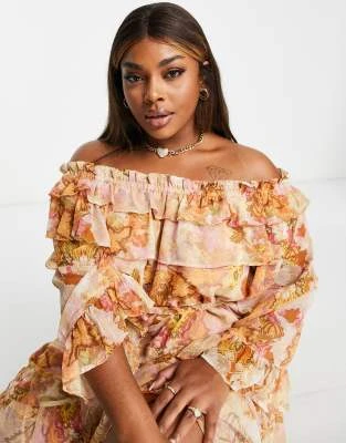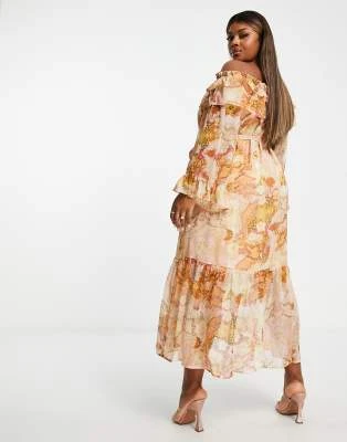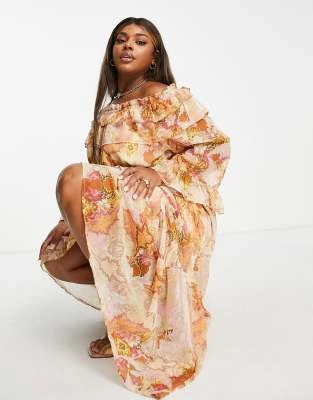 Forever New Curve – Vestito Midi Con Vita A Balze, Ruches E Glitter Oro Rosa