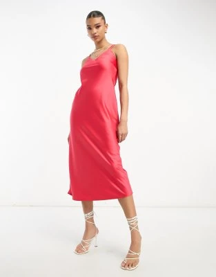 ASOS Maternity ASOS DESIGN Maternity – Vestito Midi Lilla Con Scollo Ad Anello E Maniche Con Volant
