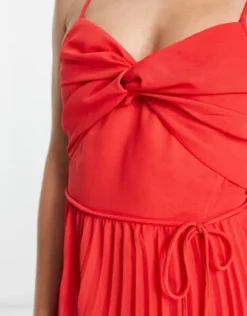 ASOS DESIGN Tall – Vestito Midi Plissé Arancione Con Strato Sovrapposto E Schiena Scoperta