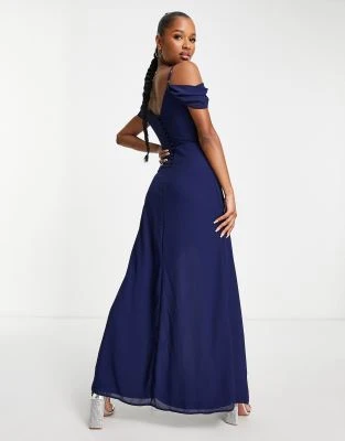 ASOS DESIGN Petite – Vestito Lungo Blu Navy A Fiori Con Bottoni E Pinces