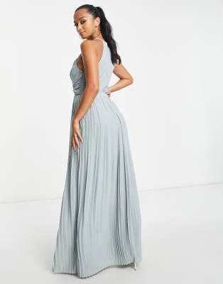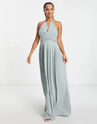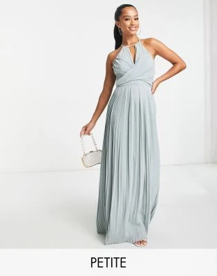 ASOS DESIGN Petite – Vestito Lungo A Pieghe E Balze Verde Salvia Con Scollo Profondo