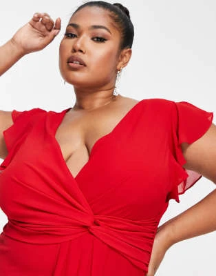 Forever New Curve – Vestito Midi Con Vita A Balze, Ruches E Glitter Oro Rosa