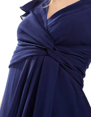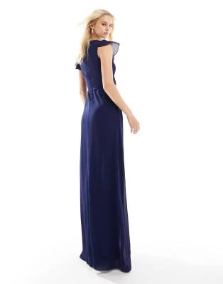 ASOS DESIGN Tall – Vestito Lungo Con Maniche A Campana Blu Cobalto Con Pieghe E Cintura