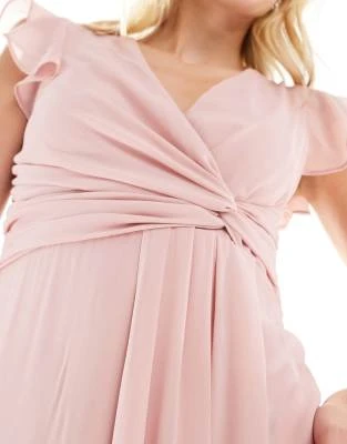 ASOS DESIGN Tall – Vestito Midi Con Spalle Scoperte E Perline Decorative Rosa A Portafoglio