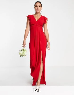 ASOS DESIGN Tall – Vestito Midi Con Scollo Profondo E Fusciacca Verde