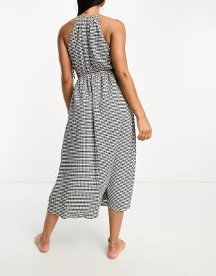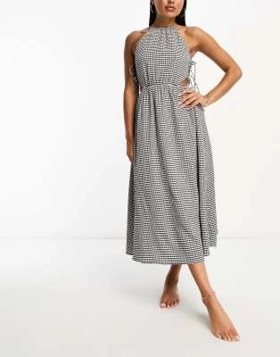 The Frolic – Rubellite – Vestito Estivo Allacciato Al Collo Con Gonna Al Polpaccio Nero E Bianco Testurizzato A Quadretti