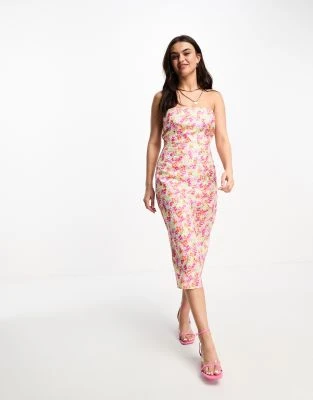 ASOS Maternity ASOS DESIGN Maternity – Vestito Midi Lilla Con Scollo Ad Anello E Maniche Con Volant