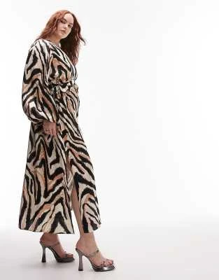 ASOS LUXE Curve – Vestito Midi Decorato Bianco E Blu A Fiori Con Maniche A Sbuffo