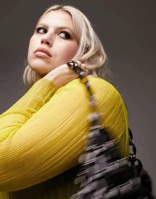 ASOS Edition Curve – Vestito Corto Con Maniche A Campana E Corpetto Ricamato Giallo