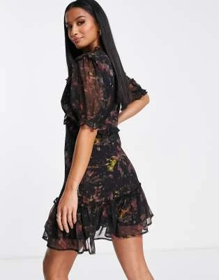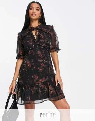 Forever New Petite – Vestito Corto Giallo A Fiori Con Maniche A Sbuffo