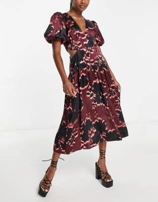 Nobody’s Child Petite – Esme – Vestito Midi Con Dettaglio Laccetti Sulle Maniche Verde A Fiorellini