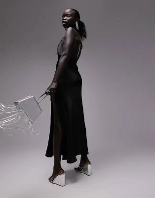 ASOS DESIGN Petite – Vestito Lungo In Rete Rosa Con Stampa A Macchie Con Spalline Sottili E Fascia