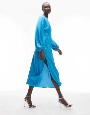 Closet London Tall – Vestito Longuette Con Maniche A Sbuffo E Dettagli Stile Corsetto Blu Navy